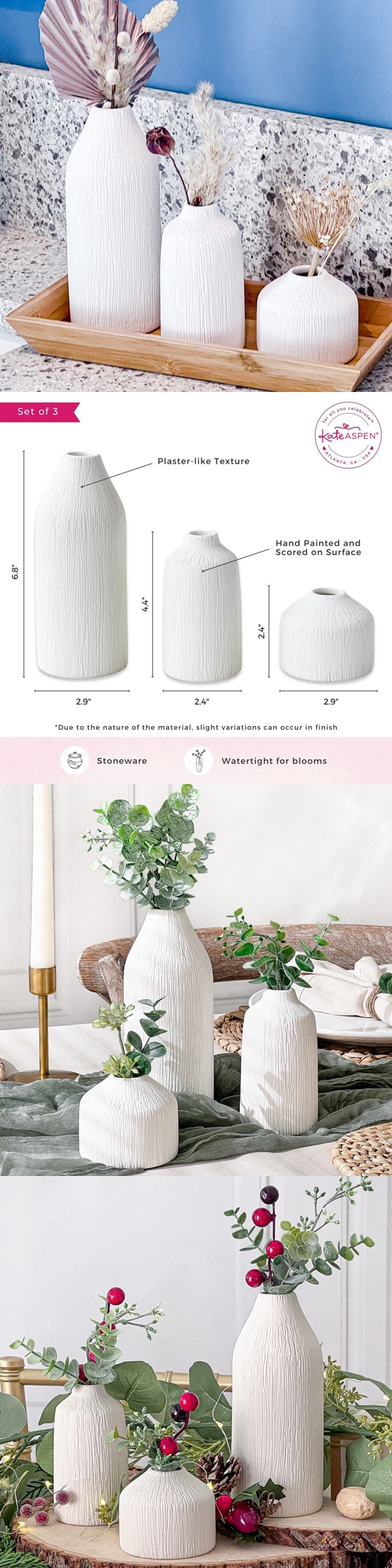 Kate Aspen White Boho-Style Textured Ceramic Bud Vases (Set of 3)