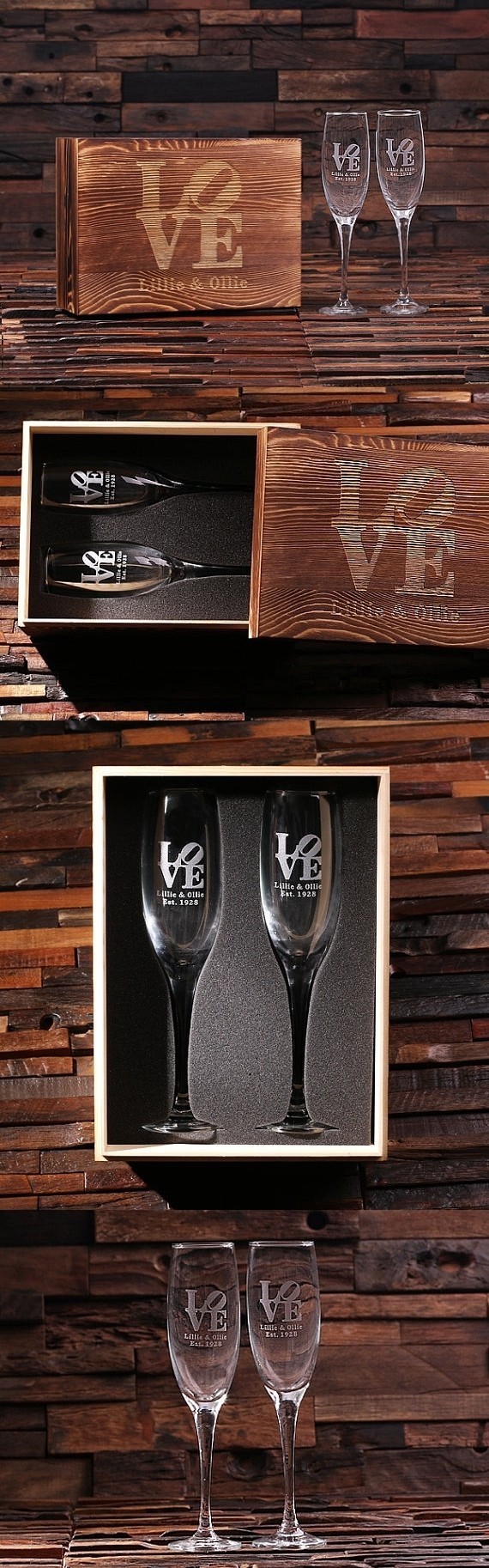 Dimensions: Box: 5" x 11" x 8"; Champagne Glasses: 10 1/4" x 2 1/8" (at top) x 2 1/2" (at base) (each glass holds 6.5 ounces)